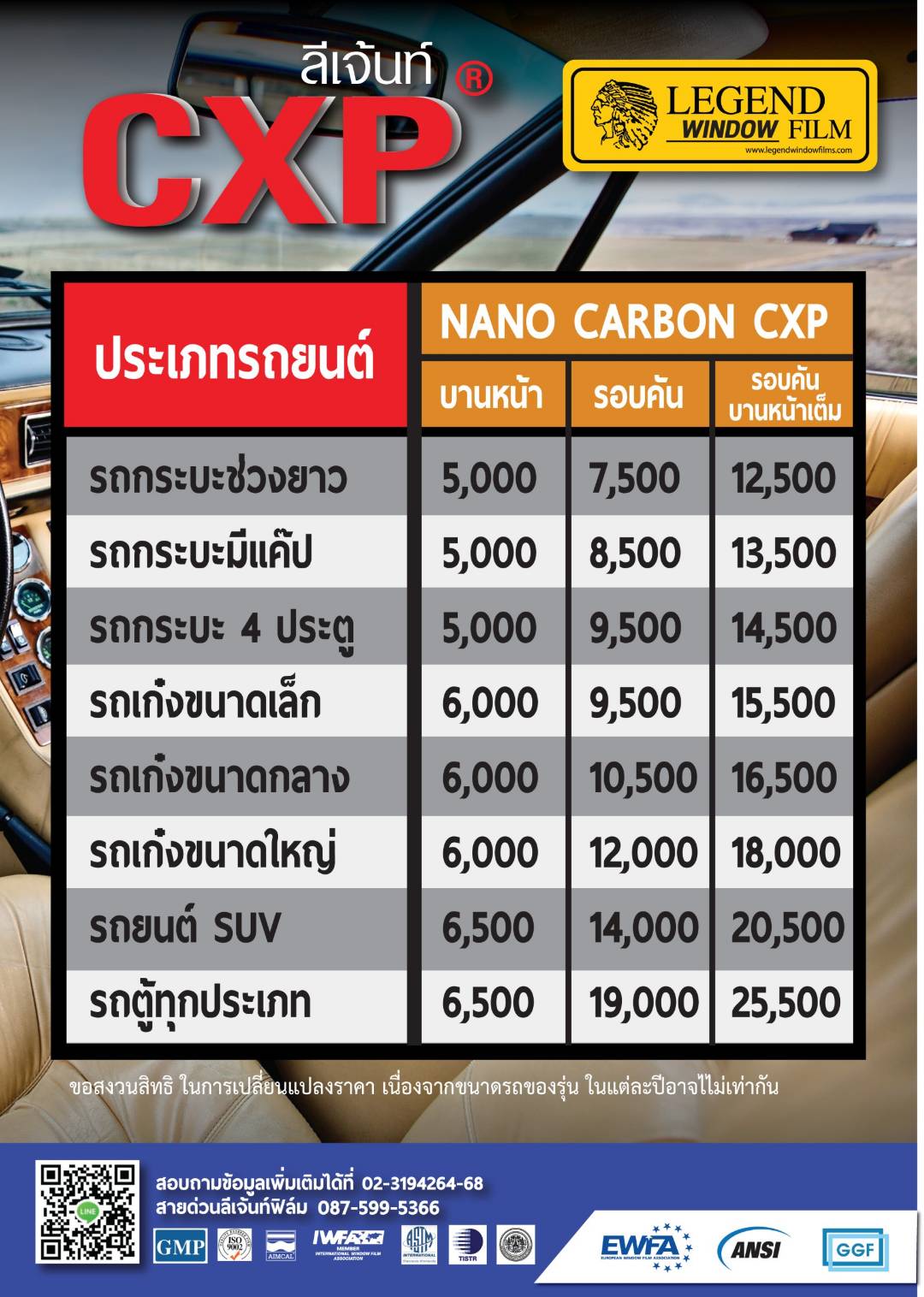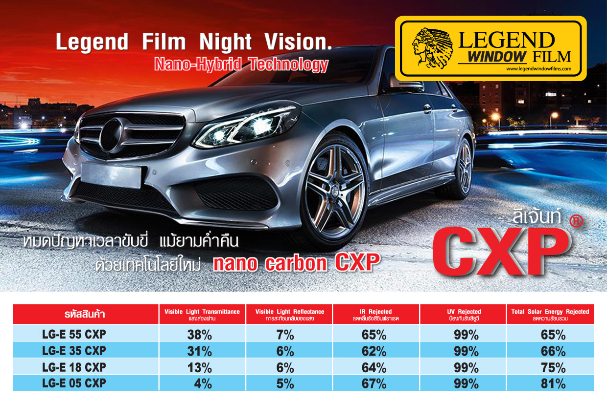 cabon CXP series เป็นฟิล์มที่ผลิตด้วยกระบวนการ Nano Technology โดยใช้วัศดุผงคาร์บอนคุณภาพสูง มาผ่านกระบวนการนาโน จึงทำให้ฟิล์มมีคุณลักษณะเป็นฉนวน ที่กันความร้อนได้ดี แต่ไม่กันคลืนสัญญาณต่างๆ ไม่ว่าจะเป็น GPS , 3G,4Gหรือสัญญาณ ดิจิตอล เป็นต้น และยังทำให้ทัศนวิสัยในการมองเห็นจากด้านในได้ดี ทั้งในเวลากลางวันและกลางคืน เฉดสีดำ ไม่เงา กันความร้อนได้สูงถึง 81%% แสงส่องผ่านมี 31%,13% และ 4% ป้องกันรังสี UV ได้ 99%